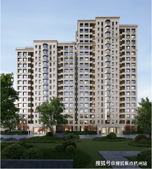 古北99外立面实景呈现,采用天然黄金麻石材! 相比同级楼盘普遍铝板+真石漆的配置,项目全干挂石材的投入,诚意满满!