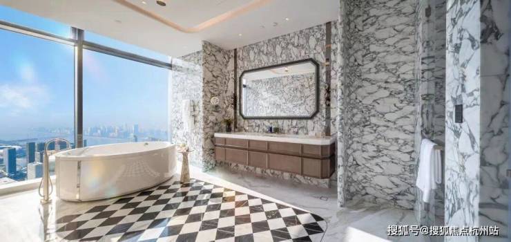 客厅是约18m的看江面,(建面约)160㎡的餐客厅,270度落地窗外,是杭州之门、莲花碗、国际博览中心,这座城市最耀眼的心跳,与你一起闪耀。