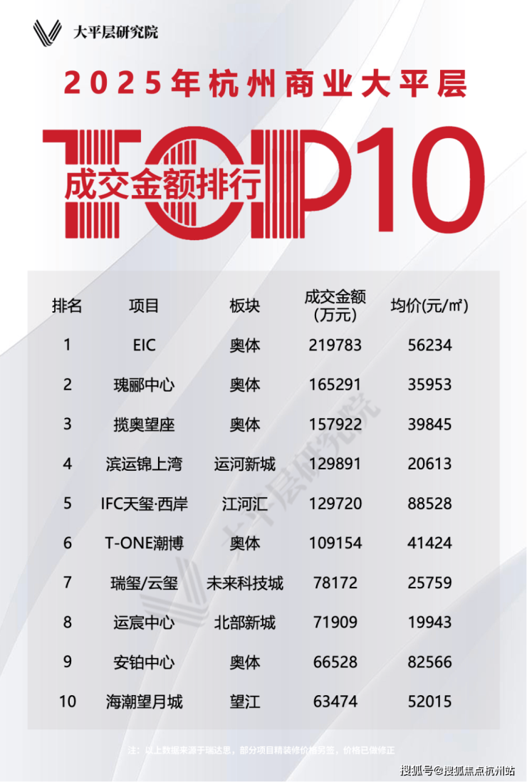其中最瞩目的当属EIC,EIC的大平层(建面约)375㎡送(建面约)107㎡,得房率约93%, 2025年卖了101套,成交金额近22亿,卖到了全杭州商业大平层销售额的第一名,也是5万+大平层的销售套数、面积、金额三冠王! 它的写字楼也卖得很火,还创下了今年杭州最大的2.5万方的单笔租赁。