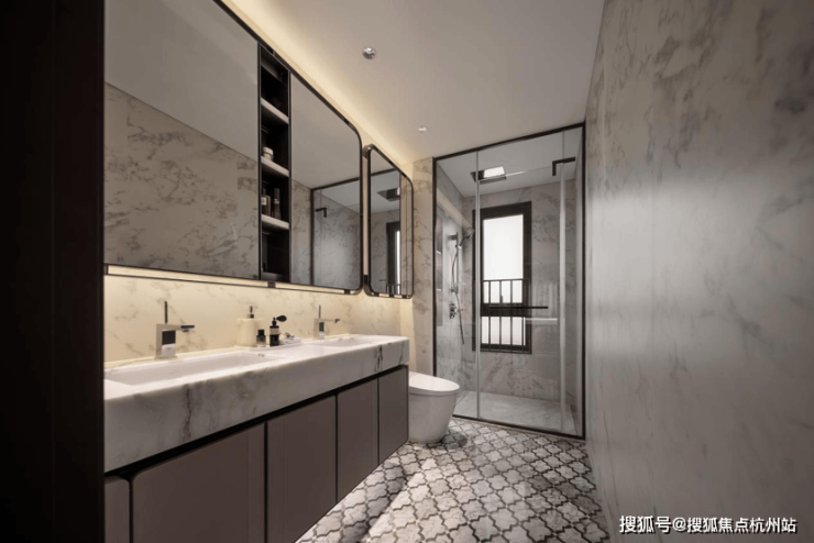 厨房方面,西门子或同档次品牌的燃气灶、抽油烟机、蒸烤箱、洗碗机、嵌入式冰箱五件套;还有细节上的一些配置,例如燃气热水器、末端直饮、凉霸等统统安排上了。