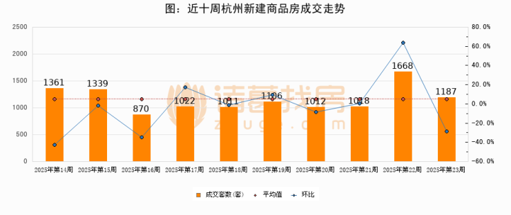 【杭州成交周报】第23周新房成交1187套,二手房1342套,涨价房源234套