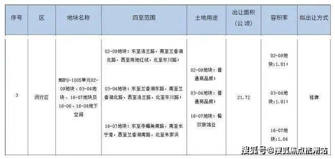 3月28日,象屿667874万元拿下闵行区MHP0-1005单元02-09地块、03-04地块、16-07地块及16-06、16-08地下空间,地块楼板价30151元/㎡,溢价率18.97%。