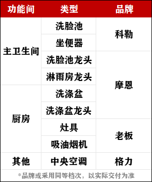 比如厨房用了老板(或同档次品牌)的灶具和吸油烟机,卫生间用了科勒(或同档次品牌)的洗脸池和坐便器,同档次的品牌在约500万左右的项目也不多见!