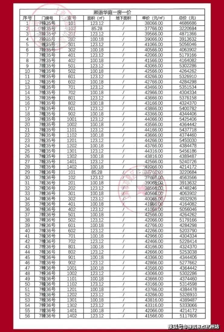 项目2期一房一价表▼