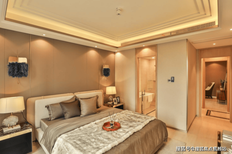 主卧设有衣帽间及尺度功能配置齐全的卫生间,内部双台盆、淋浴房、浴缸齐备。
