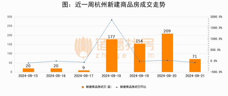【杭州成交日报】09月21日新房成交71套、二手房161套;涨价房源165套