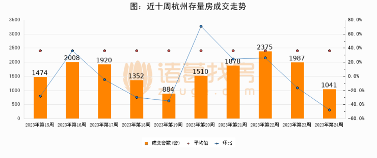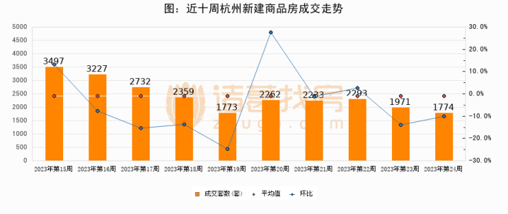 【杭州成交周报】第24周新房成交1774套,二手房1041套,涨价房源2587套