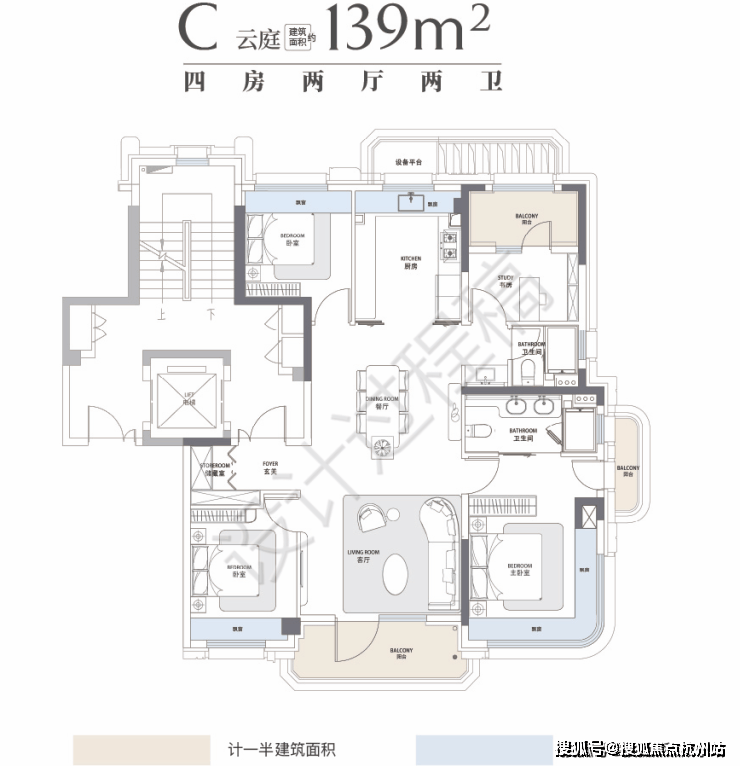 139㎡标准的四叶草四房户型: