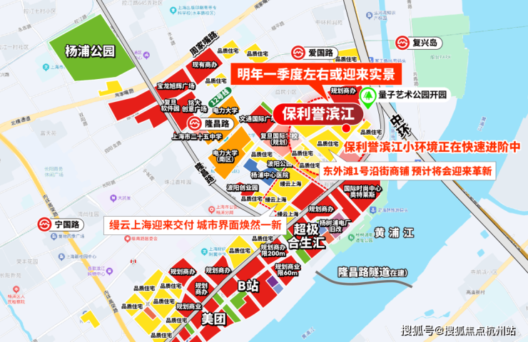 如果说产品力是保利誉滨江的“立身之本”,那么板块势能的全面爆发便是其价值跃升的“加速器”——项目周边小环境的界面提升、杨浦滨江南端的产业势能与复兴岛的“顶流”蜕变,正形成三重利好共振,让项目的价值前景愈发清晰。