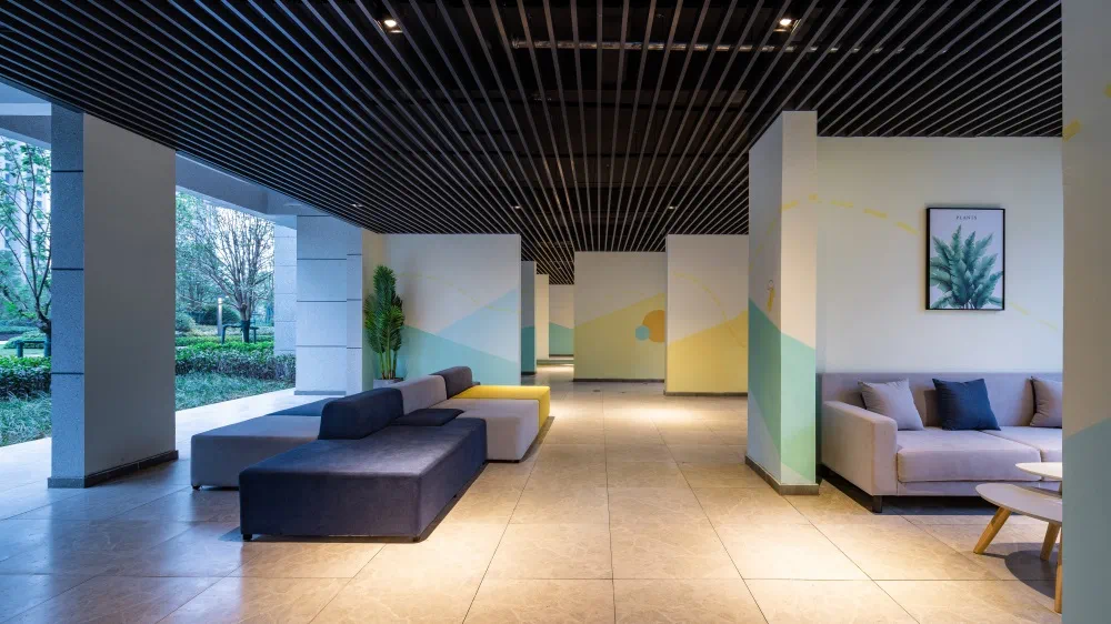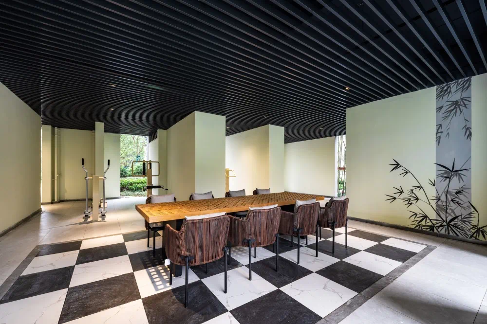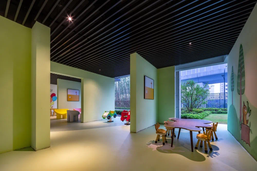突然下起大雨,快从户外能量吧转移到健身主题架空层,两大儿童主题架空层,满足幼儿玩耍、课后小课堂需求;专为老年群体打造的康养主题架空层,集棋牌、桌上足球、高尔夫果岭于一身的全能架空层,让老年生活丰富起来;访友会客、手游阅读,就去社区会客主题架空层,舒适的沙发,半室外的自然环境,让会客、娱乐更加轻松,仿佛社区里的咖啡馆!