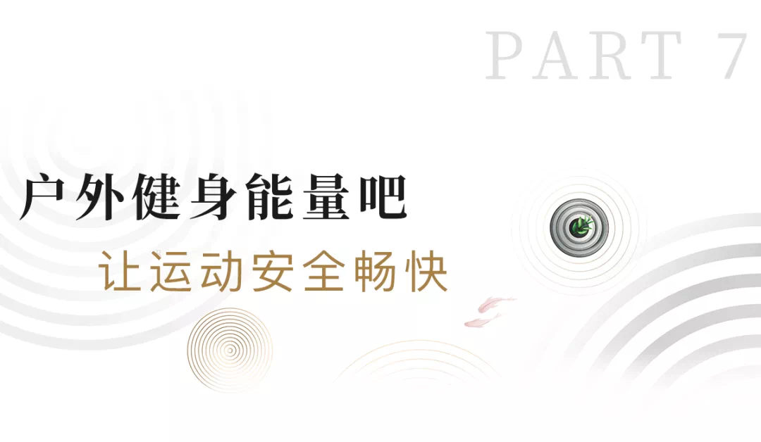 穿过丛朴广场,来到室外健身能量吧,这里也是蔚宸悦城社区为业主打造的”慢跑起点热身区”,呼吸着富氧空气,呼朋唤友,开始热身,然后一起沿着千米塑胶跑道轻松慢跑吧!