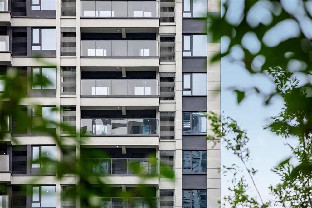 内部延伸楼栋展现超大楼间距,立面细节丰富,双面宽景观阳台,CIFI5产品立面,线条变奏,新式立面体现城市尺度标识性,整体效果现代、科技,与周边传统的建筑立面形成差异,引领青山湖品质住区新风尚。
