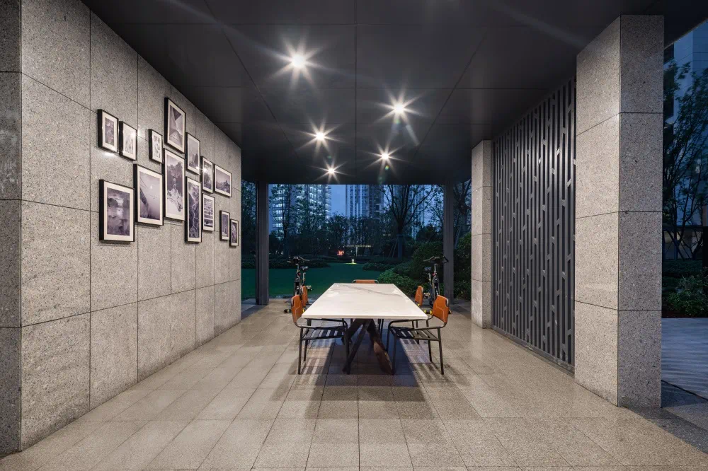 穿过林间园路,榉树林下,来一场老友的小憩闲谈,光影交错,树影淙淙,镂空灯光隐隐绰约,新邻居初识,气氛,刚刚好。