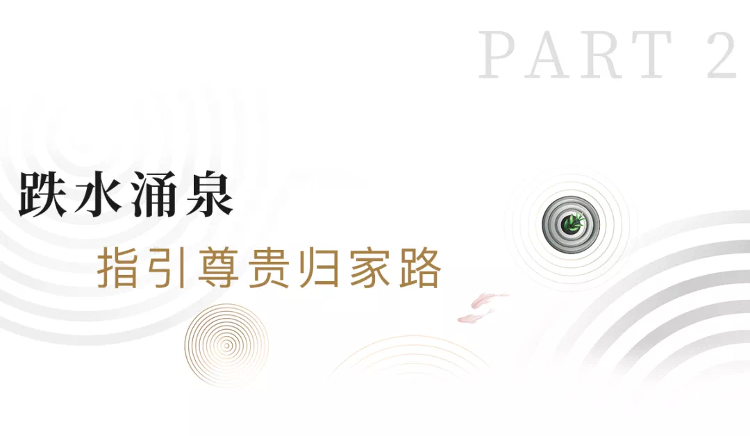 尊崇的归家礼遇,从园区主入口开始。层级而下的跌水与涌泉参差的声音若隐若现,约20米面宽主入口大门,叠加层层绿树花丛,彰显尊贵气势,邀您归家。