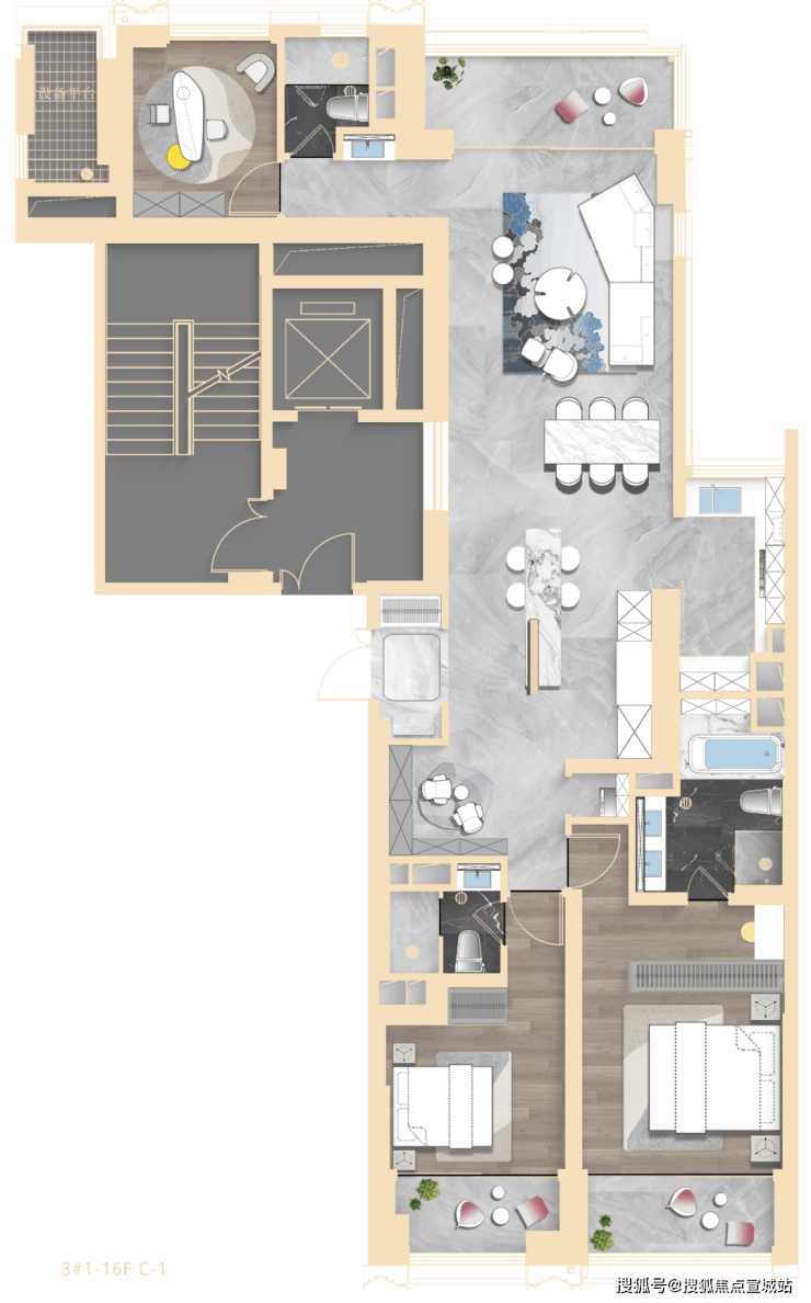 1#地块由3栋超高层组成+1栋高层,其中1#楼建筑高度达165米!(超过海泰北外滩的160米和华侨城苏河湾双子塔的150米了)