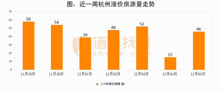 根据诸葛找房数据显示,杭州24小时涨价房源量为46套,较12月04日增加31套,环比上涨206.7%。与此同时,涨价房源占比小幅扩大,业主信心有所提升。