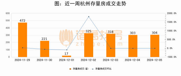 【杭州成交日报】12月05日新房成交185套、二手房304套;涨价房源46套
