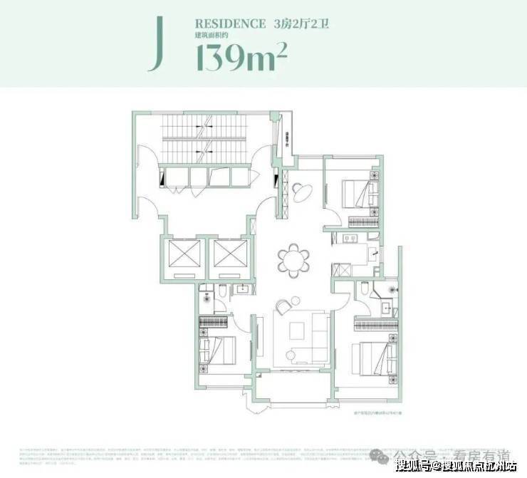约153㎡户型设计:极致观景,西瞰江景,东瞰园景!4房功能齐备!