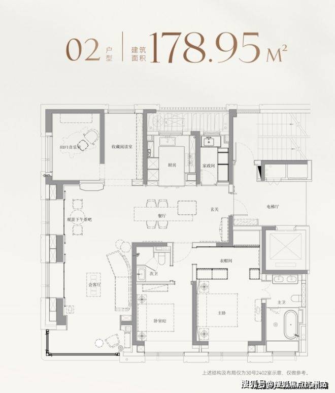 以建面约179㎡的边套为例,并未将北房间局限为常规卧室,而是灵活打造为HIFI音乐室与收藏阅读室,既可作为业主的灵感工作室,也能成为孩子的兴趣天地;