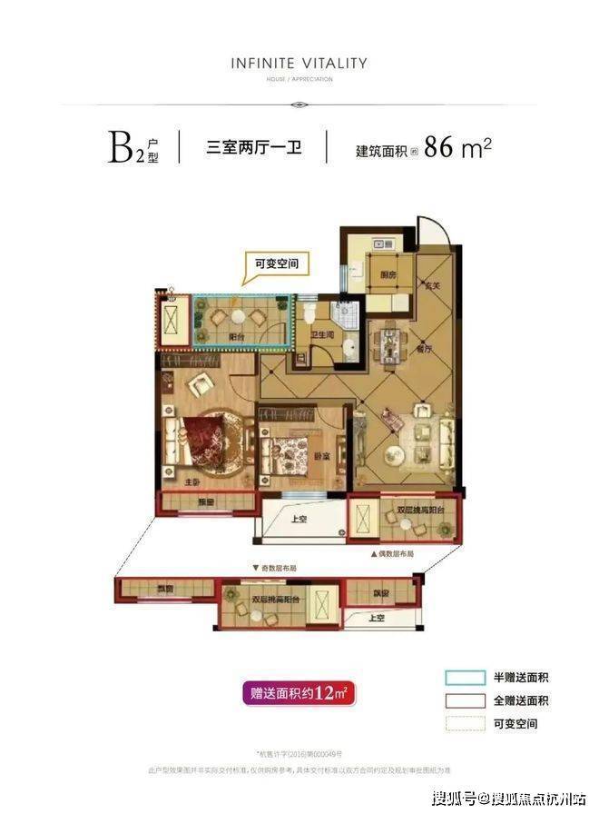 【119方】当然,也有供刚需购房者“一步到位”的三房户型——119㎡,其中可变空间也有约19㎡。