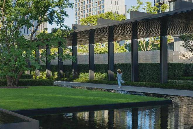 产品力的极致追求,是保利世博天悦的核心竞争力。项目特邀SCDA创始人曾仕乾等全球顶级设计大师操刀,外立面采用开放式铝板设计,接缝精度仅6mm,搭配超大尺度落地窗,尽显现代美学质感。以2.0低容积率打造约6万平方米景观园林,相当于8.4个标准足球场,包含1.3万平方米集中绿地、3000平方米水景及10个主题艺术庭院,引江入园的设计让滨江诗意融入日常。