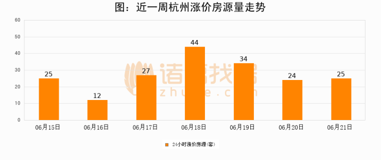 根据诸葛找房数据显示,杭州24小时涨价房源量为25套,较06月20日增加1套,环比上涨4.2%。与此同时,涨价房源占比小幅扩大,业主信心有所提升。