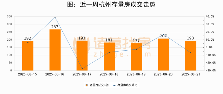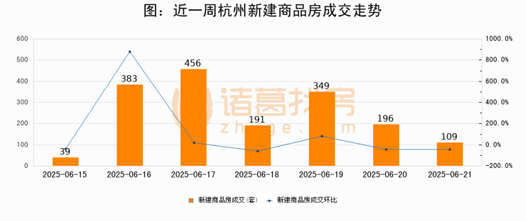 【杭州成交日报】06月21日新房成交109套、二手房193套;涨价房源25套