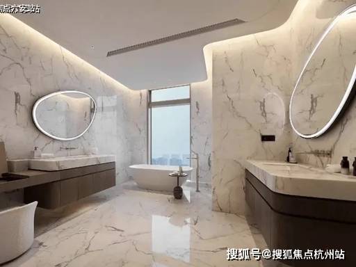 大尺度的高效利用,也让EIC大平层呈现出更多超越此前的空间享受。南向三个套房,24米的开间,停得下4辆加长林肯。进入主卧,罕见的主卫双开门设计,比一般人的主卧都要大,鱼肚白通顶,劳芬捷仕满配,甚至连公卫都是劳芬智能马桶,在这里泡澡,根本不用考虑窗帘。