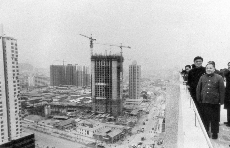 1984年2月,邓小平视察正在建设中的深圳国贸大厦,图片来源中国建筑