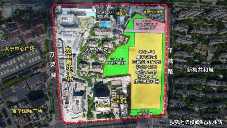 该项目位于大宁公园北侧、东临新梅共和城,占地面积约31603㎡,容积率2.95,限高100米(住宅高度不超高80米),计容面积约93229㎡,其中住宅占比≤79%,办公占比≥21%。