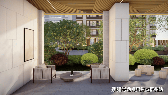 第三进——艺术造景 :经过回廊转角,江南女子意境的雕塑和孤植,达到移步异景的归家体验。