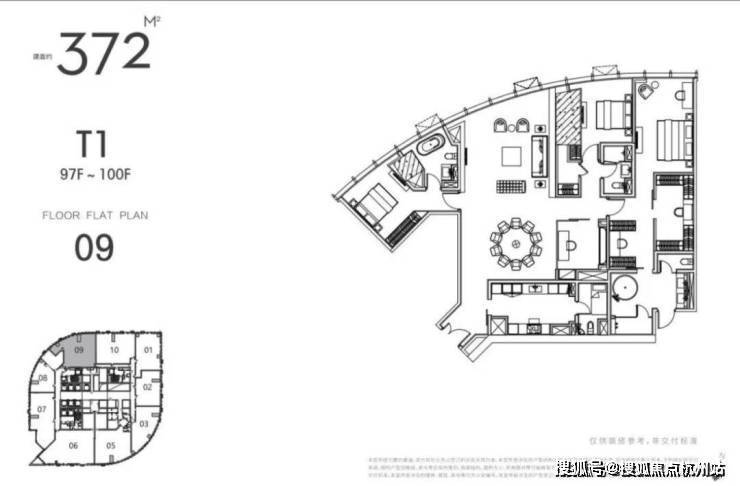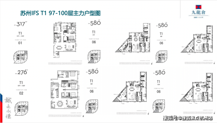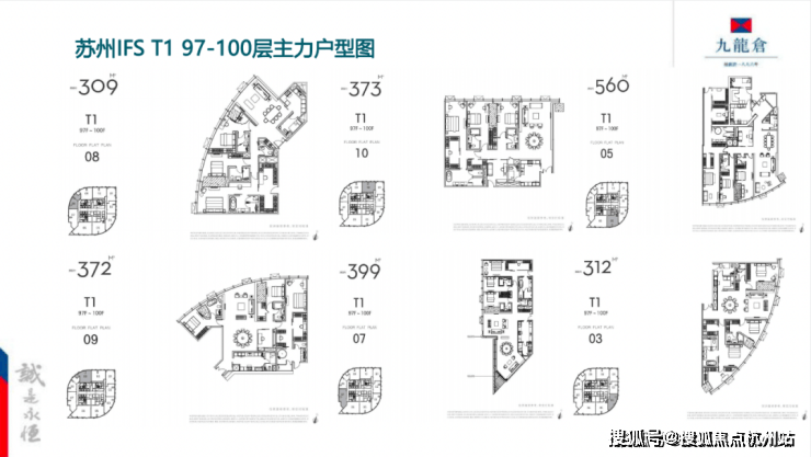“江苏第一高”“全球十大可售超高层地标住宅”,世界上唯一可售超 高层;L97-L100 云端摩天大宅,70年产权,垂直高度327米起;