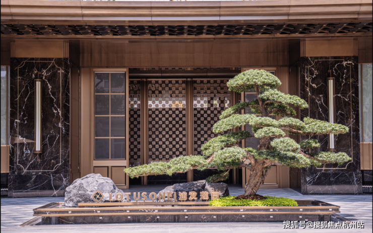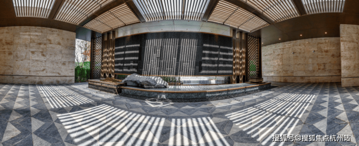天然玉石等多种颜色奢石,再辅以深咖色定制纹样金属,让这个门庭成为板块内最具识别度的存在。