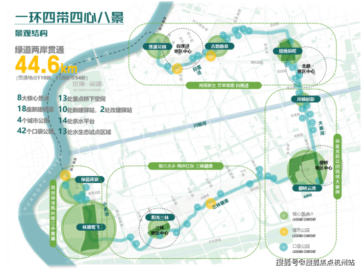 未来,世博水环将打造 莲溪公园、古韵新章等八大核心景观节点,形成“一环四心四带八景”的景观结构,构建可漫步、可休憩、可运动的滨水生活圈。