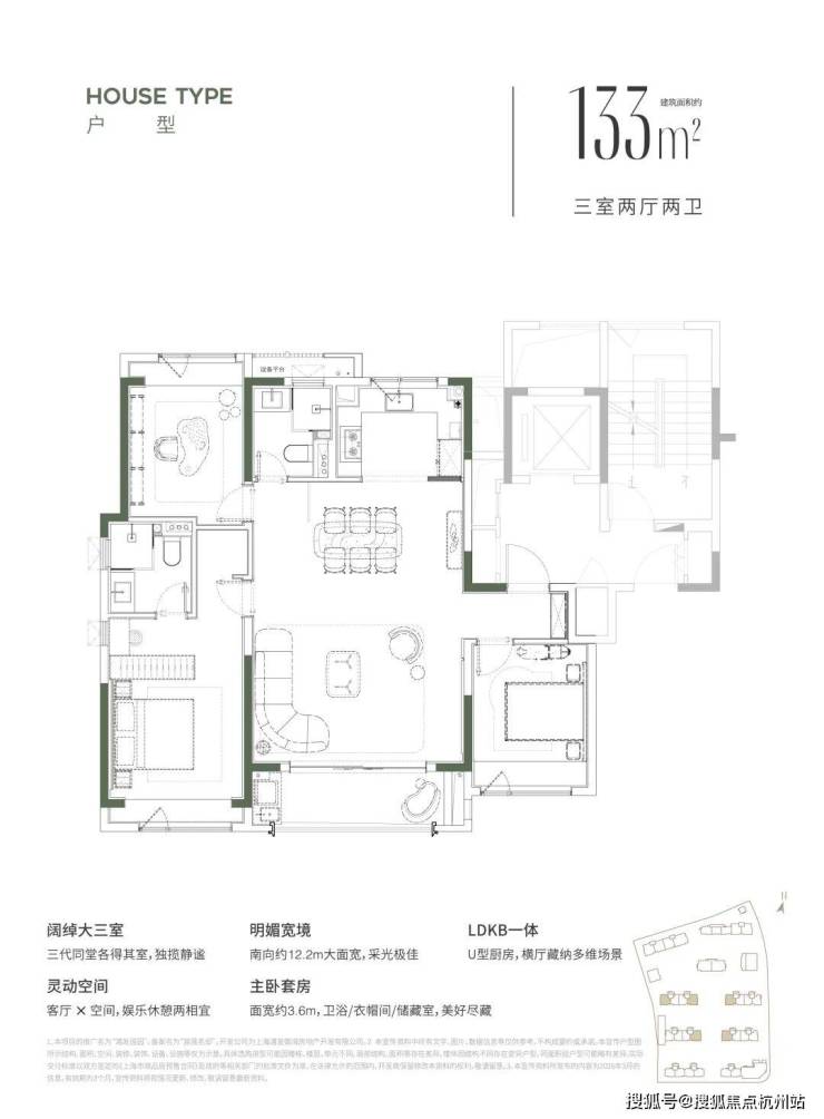 建面约133㎡户型是用越级配置回应“不将就”。 三开间朝南、约12.2米的面宽,放在很多140㎡以上的户型里都不逊色。