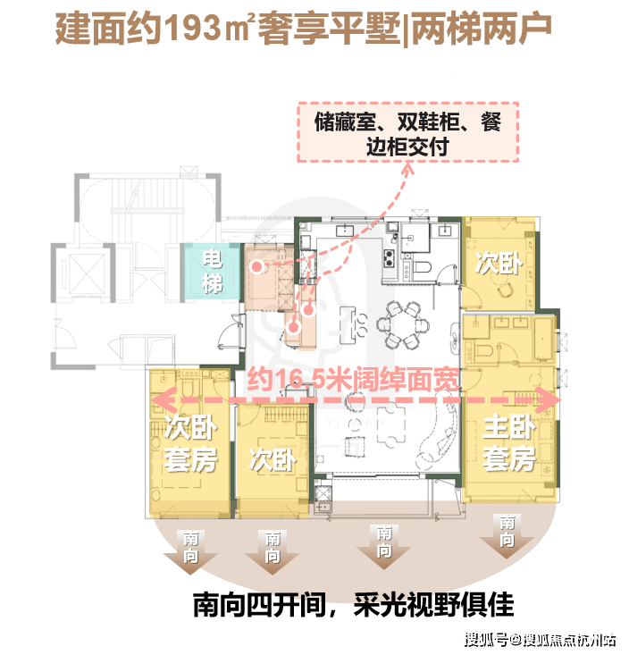 建面约133、143、193㎡户型, 南向面宽分别达到了约12.2米、约12.5米、约16.5米;