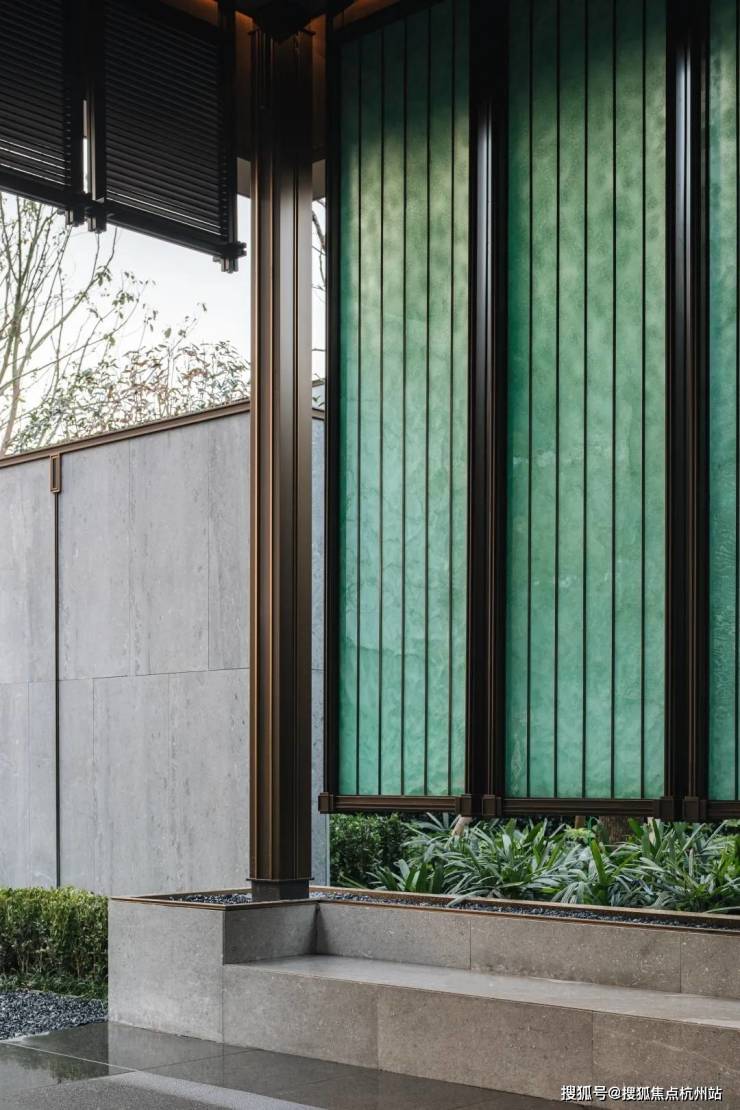 在门头及入户大堂的用材上:单元门头整体和小区入口大堂呼应,两侧采 用大象灰石材哑光面和拉槽面,搭配定制龙鳞纹金属网,带给业主的出入间的仕第门庭礼序,呈现了现代东方的城市风骨,尊贵感油然而生。