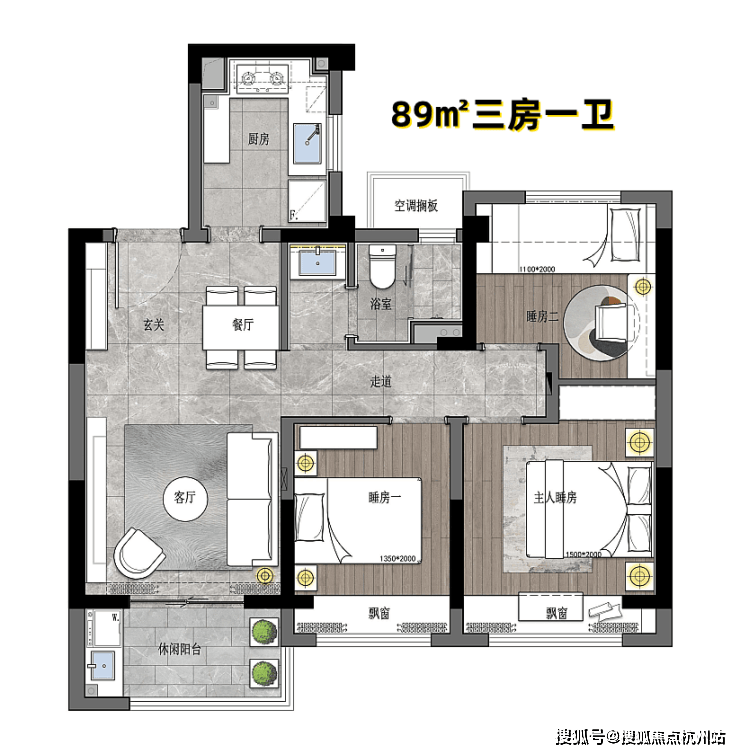 ·洋房户型南北双阳台设计,悦纳风光,自成天地,扩容空间,增加工作间