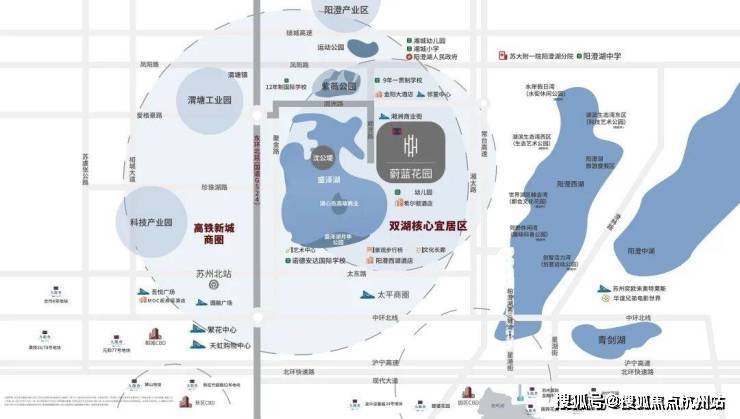 九龙仓蔚蓝花园所在的位置属于苏州北双湖板块,与风光秀美的阳澄湖、盛泽湖为邻。住宅与湖景的距离,其实也暗示着一块土地的价值,离得越近,土地价值越高,更能给业主提供良好的居住环境。