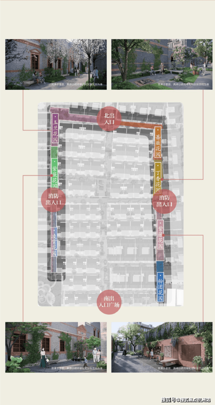 项目拥有约1.1的超低建筑容积率,社区狮子景观轴线串联海派生活的原味;提取经典洋房的场景植入社区景观打造,将丁香、紫藤,蔷薇,紫薇……等八种主题花卉,传香入园,串联巷弄8个花园,组成U型景观带,围合一座弘安大花园,叠影海派繁花巷弄里。