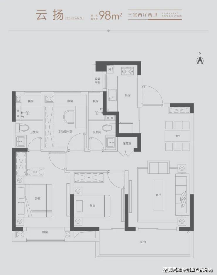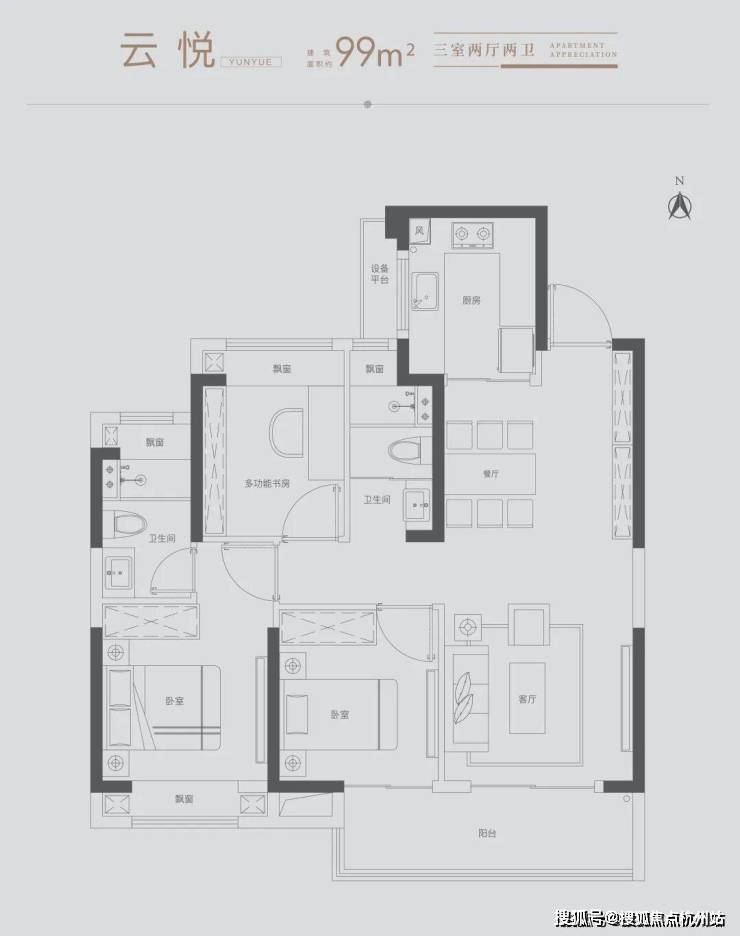 雅致三房:满足三口之家所需,北向房间可改造书房,理想生活一步到位