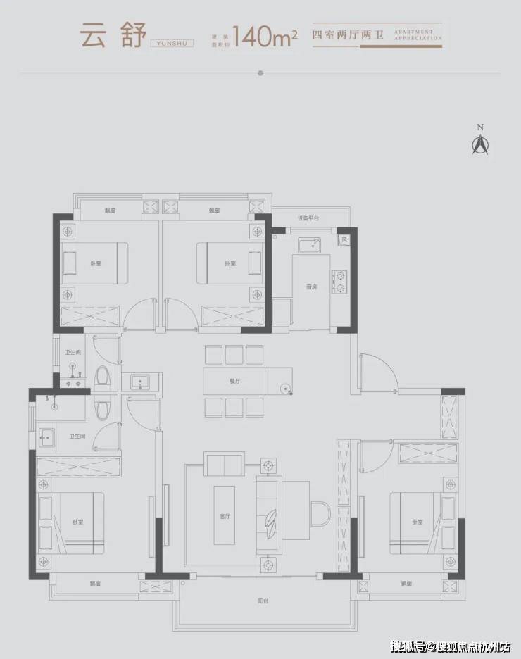 方正格局:全明阔绰四室、约13.4M南向四开间,打造尊荣生活格局