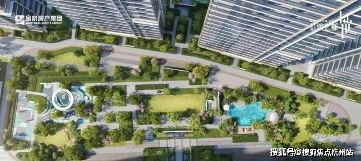 项目1期8栋住宅建筑呈南北排布,围合约13000方景观中庭。从鸟瞰图来看,虹缤之都9#楼既与银湖公园紧邻,向湖景公园敞开怀抱,向南又俯小区中央园景。自然形成以“园”为庭,以“湖”为院的“前庭后院”双乐园体验。