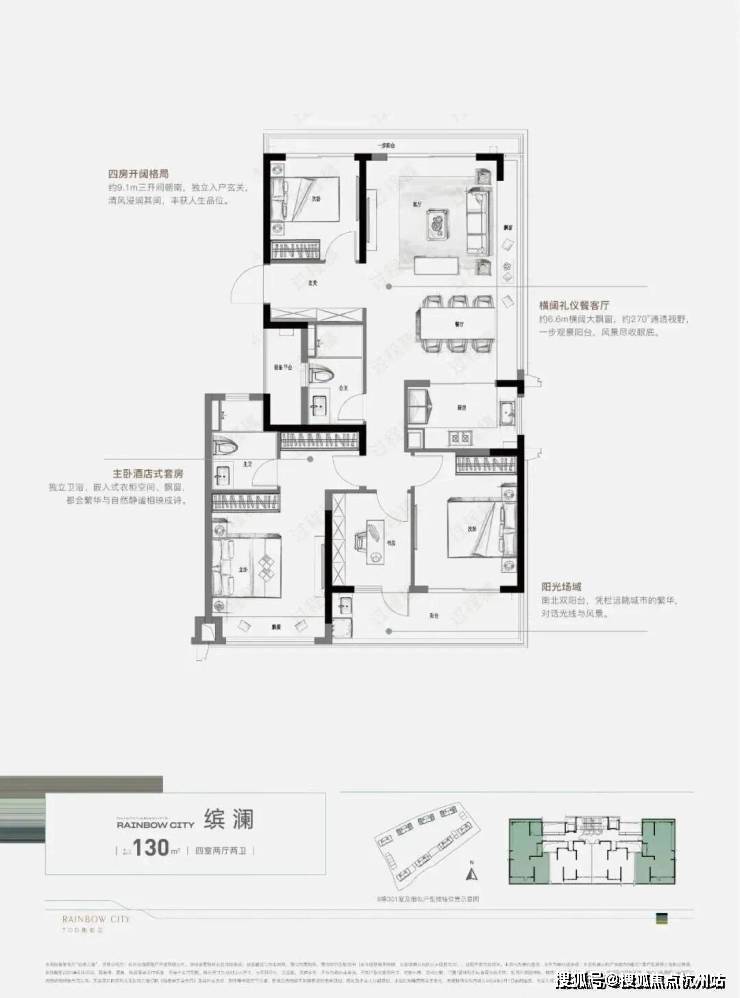 而建面约130㎡户型,在纯边套、约270°环景视野的基础上,餐客厅配以约6.6m横阔大飘窗、一步朗阔阳台,瞰景收心,释放恬淡自在的情绪。约9.1m三开间朝南,约5.6m双联阳台,无限扩展生活意境,园林芳华尽现眼前。一方阳台亦可作为私人天地,一台跑步机或瑜伽垫,即刻打造一个健身房;一副休闲桌椅,亦可感受生活的自如惬意