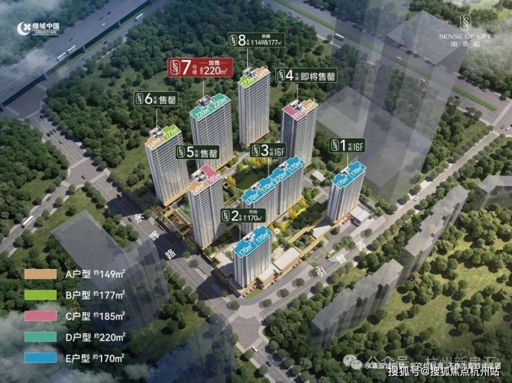 绿城中国,位于世纪城核心。建筑面积约94435.34㎡。容积率2.7。8幢16-25F高层住宅。户型面积约149㎡、170㎡、177㎡、185㎡、220㎡,总户数356户,精装交付 ,绿城物业。总价700万起,少量房源可以直接认购,均价约54000元m²。