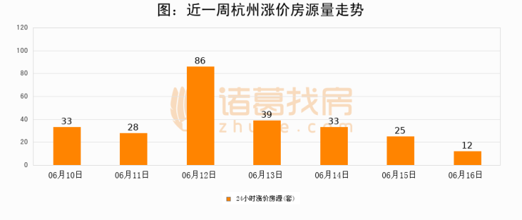 根据诸葛找房数据显示,杭州24小时涨价房源量为12套,较06月15日减少13套,环比下降52%。与此同时,涨价房源占比小幅回落,对于购房者来说是一个入市窗口期,购房者可抓住时机入市。