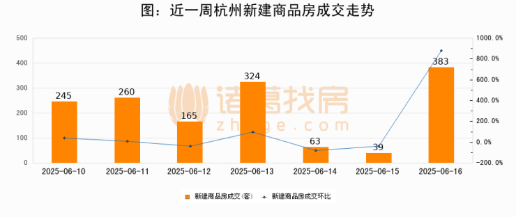 【杭州成交日报】06月16日新房成交383套、二手房267套;涨价房源12套