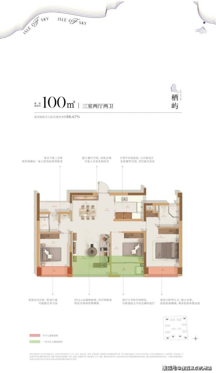 建面约100方户型: