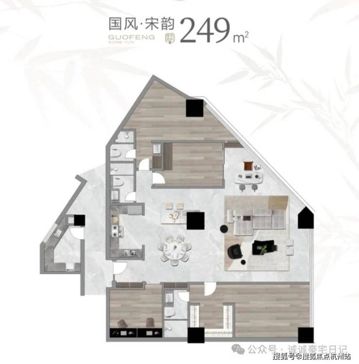 在售户型面积:在售户型建筑面积为 177-249㎡,户型为 3 房 - 4 房 2 厅 2 卫 1 阳台。