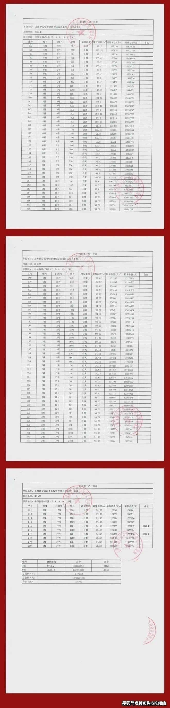 一房一价表: